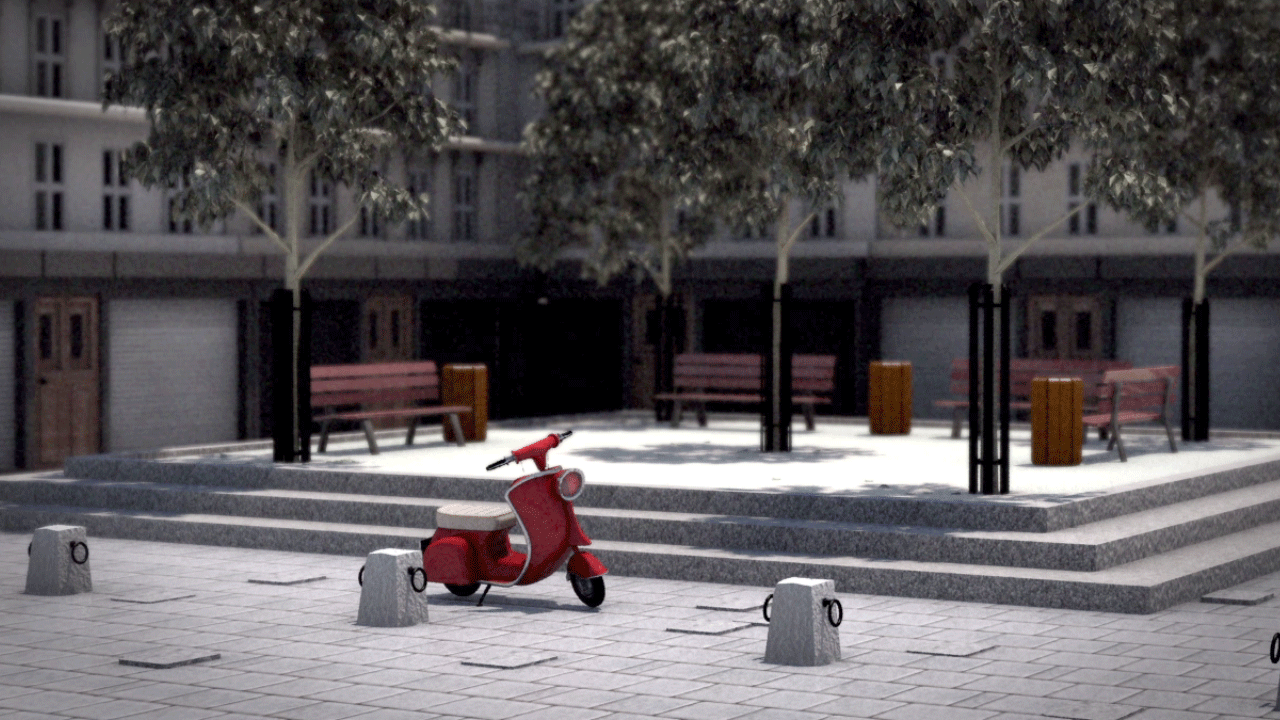 Projet 3d de 2e année d'Animation Numérique. Modélisation d'une moto Vespa au milieu d'un environnement citadin.