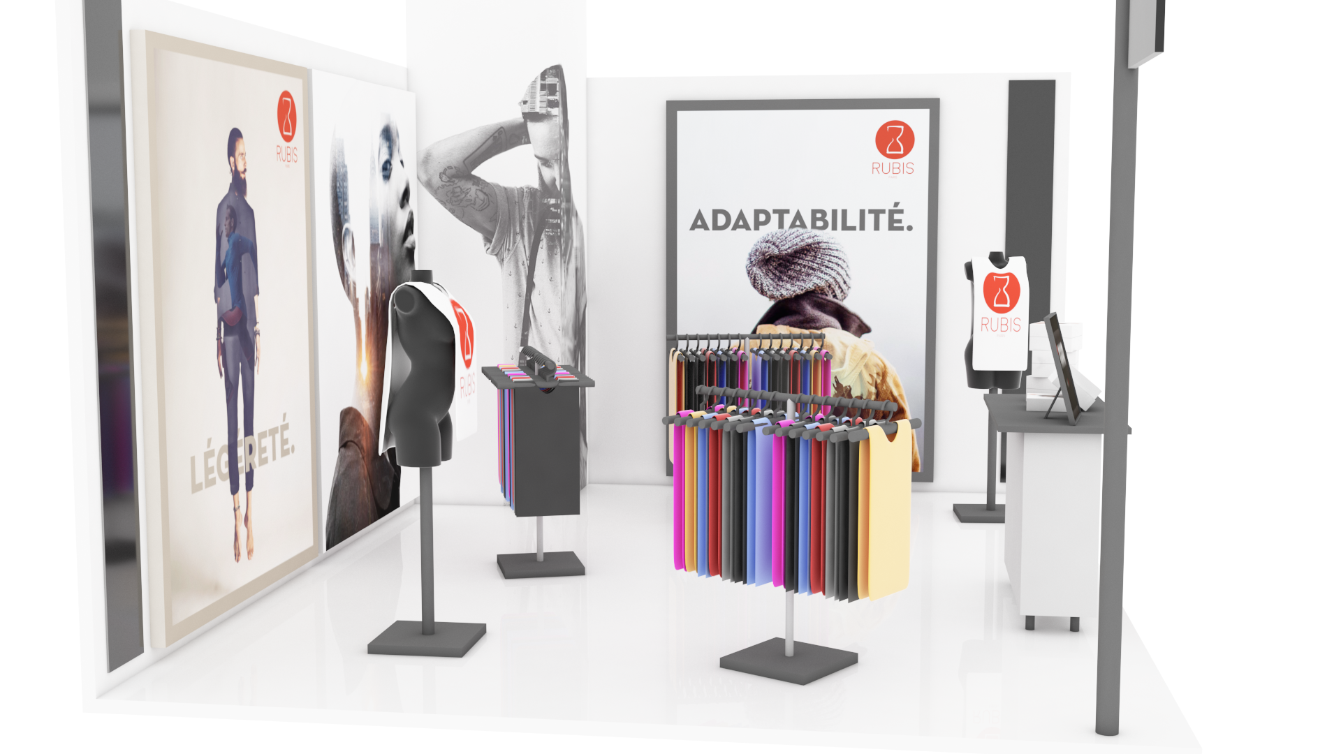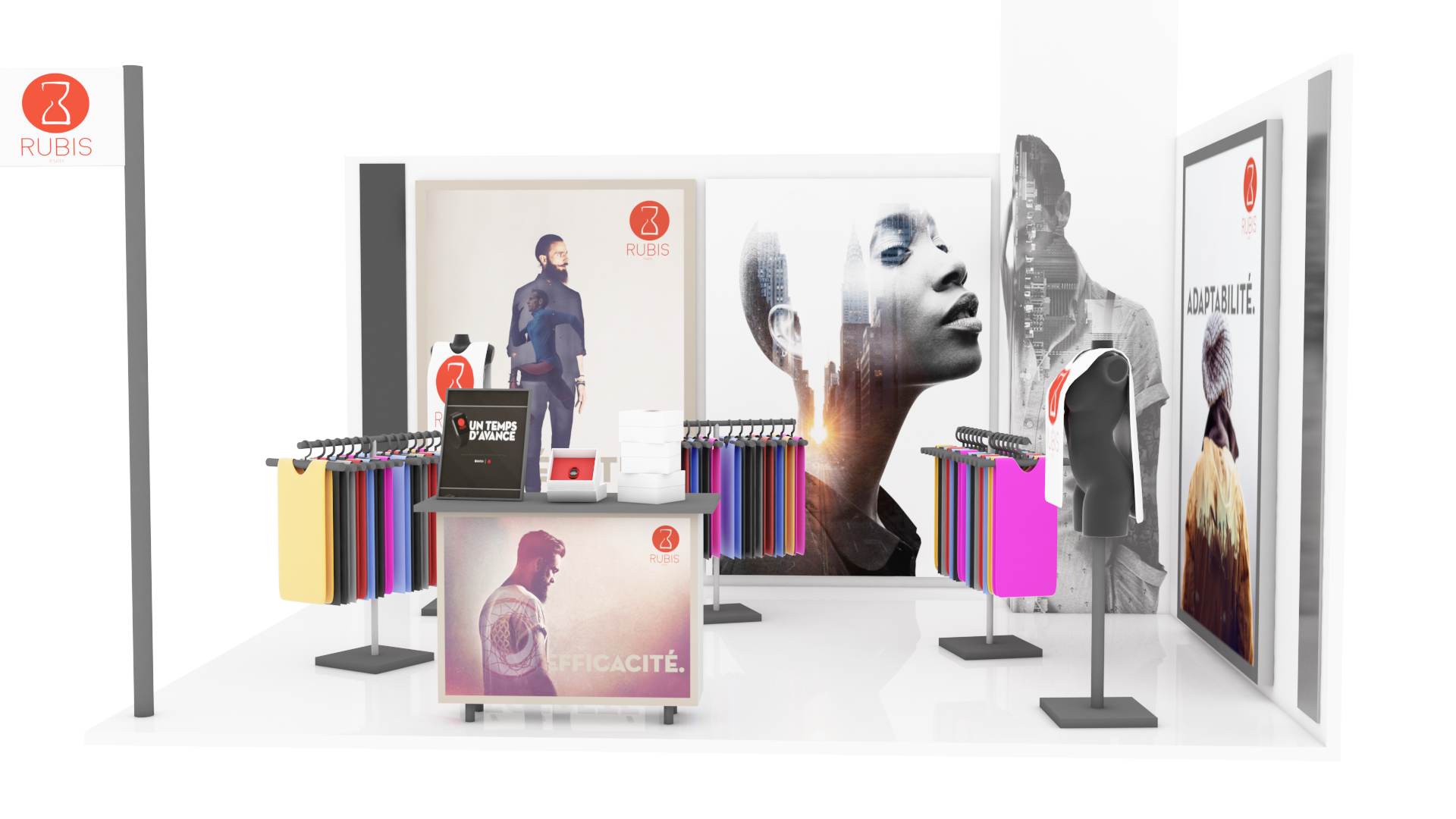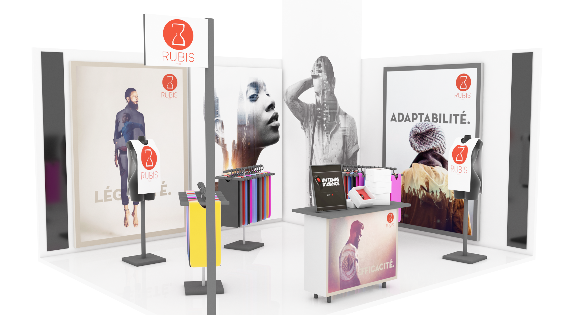 Reproduction du stand Rubis au couleur de la marque, pour le salon « SPORT ACHAT ÉTÉ 2016».